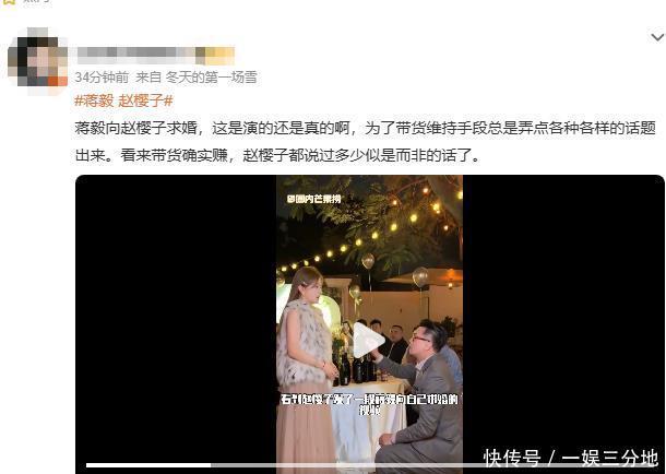 而现场的细节也能看出不太像真的,毕竟谁家求婚戒指能大整整一圈啊,戴上了还往下滑。 这细节都给我整笑了,而网友们也是直呼让她别炒作了,还有说她为带货维持热度不择手段的,